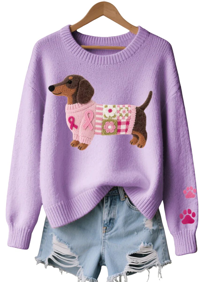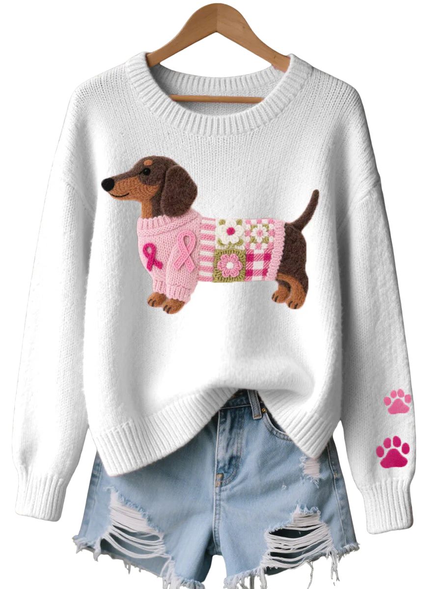 Naoni – Strikkegenser med motiv af dachshund i uldfilt